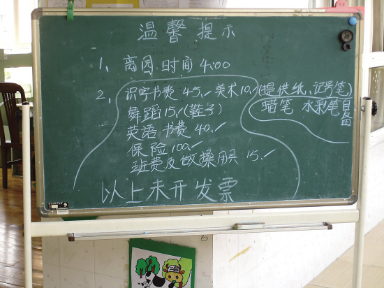 陈女士的孩子在江口中心幼儿园读中班。9月1日,她去给孩子交入托费。“我收到发票时发现多了一笔费用,发票上写的抬头是‘快乐识字’,150元;除了150元外,我还交了45元的快乐识字教材费,这个还没给开发票!”