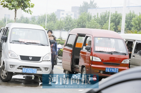 在郑州黄河科技学院新校区东门外,围满了面包车,这些车都是附近网吧派来接学生去上网的。车上挂着免费接送的牌子,不时有学生从学校出来钻到车里。