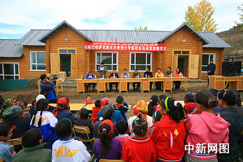 中新网乌鲁木齐9月21日电(刘新海)新疆喀纳斯景区所辖铁热克提乡白哈巴哈萨克族北京希望小学今日正式落成,当天已经有白哈巴村26名哈萨克族小学生正式报名上课。