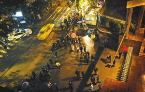 昨日晚上8时许,记者来到中学大门处,看到学校门口的3条岔路分别由警察和保安守着,大门一圈除了拉上警戒线,警察在警戒线外还站成一圈,人数将近50人。记者试图进校询问,被保安拦在门外。