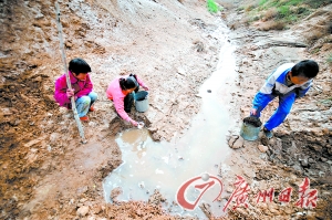 中庄小学算是距离水源比较近的学校,走逾一公里的山路就能取水。水源是山沟里一条浑浊的小溪,中庄小学高年级的学生要轮流到山沟里抬水。学校老师说,这样的水是不能饮用的,只能用于洒水。