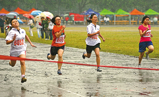 本报讯 记者黄丽娜报道:昨天的广州,满城凄风冷雨,气温也骤降了近10摄氏度。在这样恶劣的天气里,广东白云学院西校区的大体育场上,却是一派热火景象———为期3天的校运会正在如期举行。
