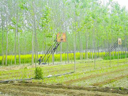 距离尉氏县城20多公里,有一个朱曲镇菜张村小学。记者在这里看到,一栋3层的教学楼前,整齐地种了数百棵杨树。校园一侧,6个生锈的篮球架下,也种满了菜。教学楼后,空地上也种满了树苗。放眼望去,偌大的校园竟没有一块空地供学生活动,这一幕很难与挂在校门上的“共青团河南省委希望小学”的牌子联系起来。