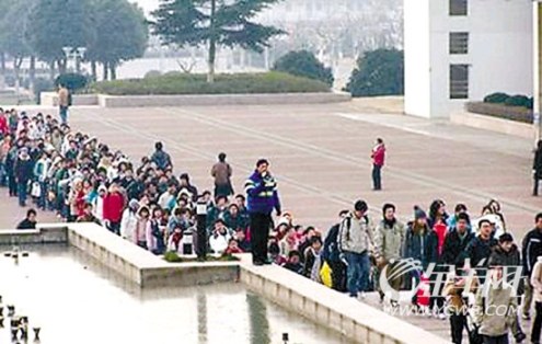 据潇湘晨报报道,日前,网友“随风”在网上公布了一篇来自校内网的日志,除了文字外还附带8张照片,图文并茂地描述了南京师范大学学生,在一个雨夹雪的寒冬清晨,在图书馆门前排起了绵延数百米的长队,几乎看不到头。两天里有近2000网友跟帖热议,有人不相信这是真的。