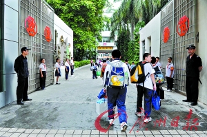 昨日清晨7时,东莞中学走读学生陆续来到学校。此时学校入口周围已有警察在巡逻,还有两名治安队员一起在校门口及附近路段来回走动。记者询问得知,他们在学校附近巡逻一直都是这样,以后会更加警惕。