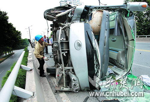 带队的胡老师称,客车上有33名中南民大财务管理专业的大三学生,上午到武钢实习后,中午乘坐租来的客车前往汉口的实习基地。目前,约有6人出现脑外伤、骨折等略重伤情,还有一些学生受轻微擦伤。