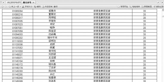 6月16日,浙江省2009年普通高校招生政策加分考生名单通过浙江教育考试网()向社会公示一周。细心的考生家长章先生发现,网页上除了一张记载约4516名考生的报名序号、姓名、加分项目与分值的“超长”表格外,还挂了一篇回应本报《浙江高考航模加分者被指多来自权势家庭》报道的情况说明。