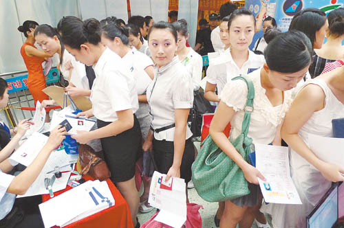 日前,广州市一商场内人声鼎沸,上万名年轻女孩子报名竞逐80名亚运空姐职位。今年南航将在武汉、沈阳、长沙、广州、南京、北京等选区招聘400名空中乘务员,其中广州选区将招聘80名,是本届招募大汇招聘名额最多的选区之一。南航在全国采用现场海选、电视选拔、社会媒体全程跟踪的形式选拔所有的空中乘务员,让有意向并有条件从事该职业的女孩子们享受“快乐就业,阳光招聘”。图为量身高及递交报名材料现场。