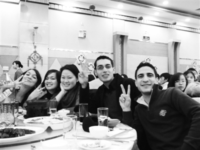 “ 这个是基围虾,那个是甜汤”,已经在华中大MBA汉语班学习了一年半的黎巴嫩小伙子Chadi专门为自己起了个中文名字——夏小龙。虽然是第一次参加中国式团年饭,但在他所在的那一桌,俨然一个中国通,不时给同桌留学生报菜名,回答他们的疑问。他笑着告诉记者,他很喜欢吃中国菜,在家乡时也常去中式餐馆吃饭。现在就像过自己国家的节日一样,很happy(快乐)。