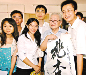 王飞、章奕贵、许琼娜等省学联干部代表全省学子向夏老表示节日问候和良好祝愿,并赠送给夏老一幅学生们自己书写的书法作品“桃李成荫”。学生干部们向教授作了自我介绍后,便拉起了家常,夏老渊博的知识和幽默风趣的谈话博得在场学生的一阵阵掌声和笑声。