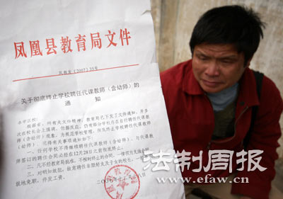 “根据有关精神,为规范学校管理,彻底终止学校聘任代课教师……必须在2007年12月28日之前让代课教师走下讲台。”老校长含泪念出教育局文件的内容,心如刀绞。