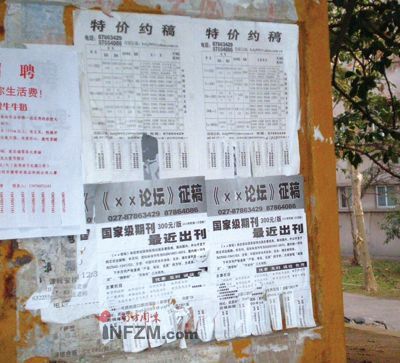 在高校里,在学术界,这已是个公开的秘密,或者是中国式的潜规则。否则,那些“论文中介”也不可能应运而生。如果你把轿车停在大学门口,可能会有雪片一样的名片塞进车窗——“想发表论文吗?期刊中介为你排忧解难!”而在“百度”上搜索,论文代理商的名字成百上千。