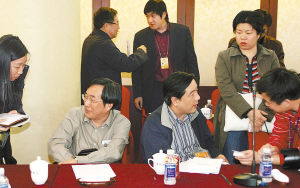 照片:3月4日,参加全国政协十一届一次会议的教育界委员在进行小组讨论。