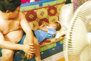 16岁的大女儿也已起床。对大女儿,陈彩霞很放心,因为她听话、懂事,而且已经能为家里挣钱了。让她揪心的是9岁的儿子淘淘。和名字一样,儿子淘气得让她有时候觉得很窝火。这时候,淘淘还蜷在沙发上睡觉,那是他的床。