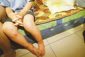 淘淘醒了,怯怯地向妈妈提出想去上学,得到的答复是等过两天手脚上的伤好了就可以上学了。淘淘下意识地摸了摸脚腕上的伤痕,痛!那是前两天被父母用绳子绑住而留下的印记。