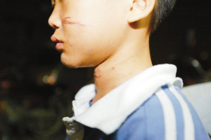 左脸上有一条约3厘米左右的伤痕,淘淘说,是妈妈用锅铲烫的。