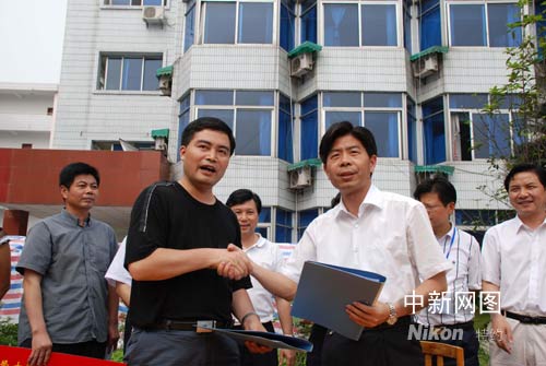麻城市长李开寿说:“这捐赠的500万元,是麻城市委、市政府和全市120万故乡人民对灾区父老乡亲的一片心,希望在重灾区倒塌的学校援建一所麻城中学。选址委托你们,质量要保证抗8级以上地震。学校建起来之后,麻城每年选派15名优秀教师带薪对口支教3年。”