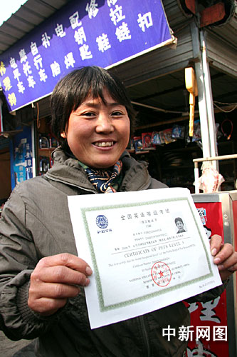 中新网宁波12月15日电(何蒋勇 陈未鸣 李孟龙)一位41岁的普通修鞋妇女,为了义无反顾地追寻自己心中的“梦想”,竟然凭借过人的毅力坚持孜孜不倦地自学英语20多年。“我终于通过全国英语等级考试,拿到了全国英语三级证书了。”昨天一见到记者,这位普通家庭妇女抑制不住内心的激动心情。