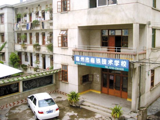 前天下午,记者与梅江区教育局相关人员来到梅铁技校调查。穿过破旧的老厂区大门,只见两栋相对而立的破旧3层小楼,这就是梅铁技校学生宿舍兼教学楼。在该校,找不到图书室,体育器材只有两个破篮球架。