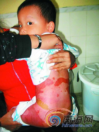 小志的母亲黄春秀对记者说,她和丈夫杨昌奇不久前从定安来到海口打工,在义兴街租房居住,几个月前把小志从定安接到海口,但又没时间照顾孩子,就把他送进了附近的育才幼儿园,平时小志在幼儿园食宿。10月14日晚上,她突然接到幼儿园电话说孩子被烫到了。她和丈夫立刻赶到187医院,看到孩子被烫掉的皮粘在被子上,非常惨。