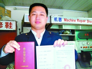 小唐说:“我写作这本书,就是想使初学者少走弯路,能快速成为一个专业的修鞋工人。”将近8万字的《世界第一机器修鞋书》书稿去年底终于写作完成,并于去年11月28日在广东省版权局进行了版权登记。