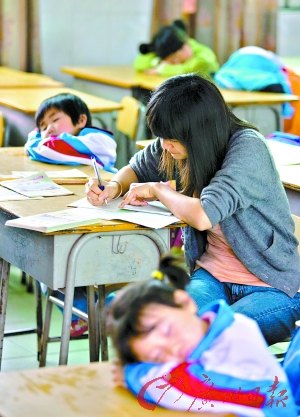 早上6时开始去接学生,直到下午6时送学生回家后才能下班,“晚上学校还规定7时30分到9时,老师必须到办公室备课、改作业。”