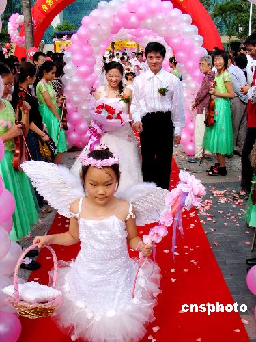 9月10日是第22个教师节,江苏南京8位教师一同举办集体婚礼。中新社发 钟山 摄