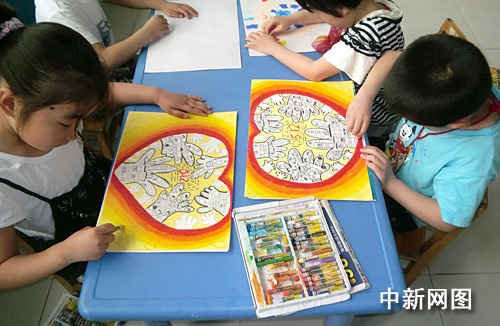 “去年这个时候,孩子们就将自己的零用钱拿出来捐给了灾区,今年‘5.12’地震一周年纪念,孩子们又通过绘画形式表达对灾区的感情,心手相连、相互支持,用自己的行动帮助需要帮助的人。”杨老师表示,孩子们的作品虽然不能被送到灾区孩子手里,但是将集结后举办一次展览,让孩子们最纯真的思想感染更多的人。(完)