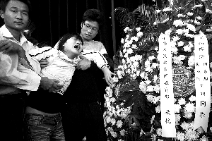 “我们都是英雄父母的儿女”、“英雄的父母就是我们的父母”,这些条幅伴着菊花,堆满灵堂。