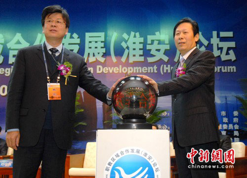论坛上,江苏省经济与信息化委员会副主任陈为保和淮安市市长高雪坤共同为产学研合作互动平台——江苏省经济与信息化委员会培训基地、淮安市产学研协会揭牌。