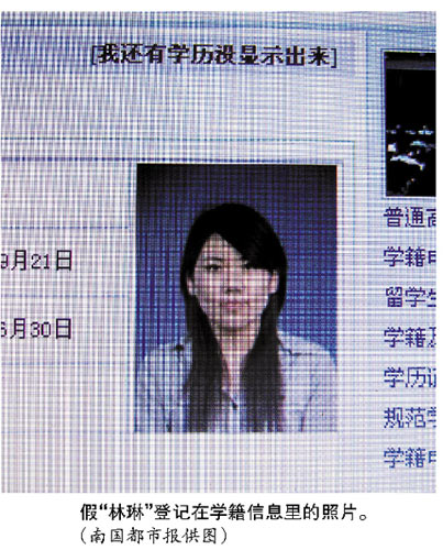 不过,回想起前几天上网查询学籍信息发现有两个自己,并且有一个自己去年已经在武汉提前毕业时,林琳还觉得有点后怕。林琳介绍说,由于面临毕业,这段时间学校正在为毕业生办理离校手续,老师要求他们登录中国高等教育学生信息网核实自己的学历情况。