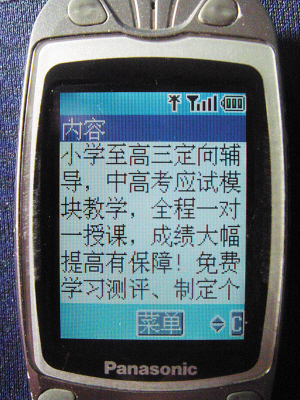 刘女士的孩子在红桥区实验小学上五年级,她最近经常接到提供寒假辅导的短信。记者按照她短信中的号码拨通了报名电话,自称是某著名培训中心的“张老师”介绍说:“我们能提供小学一年级到高三各学科的定向辅导,尤其是针对中高考的学生。”培训地点在河西区的一栋写字楼内,老师在一个大办公室分割成的若干格子间内对学生进行一对一授课,还可以针对不同孩子制定特殊的辅导方式。