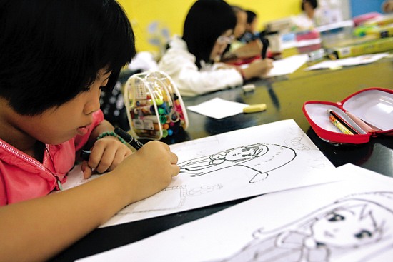 广州青年文化宫李少琬老师告诉记者:“一张纸一只笔就能带给孩子无穷的乐趣。而且小孩能在画画的过程中得到来自同伴和老师的表扬和关注,这对于他们更为重要。”当李老师告诉班上学生现在美术也能考级时,多数孩子表现出很高的热情,纷纷举起小手要报名。但第二天,大多学生都拉着个脸说“妈妈不给报”、“爸爸不给报”。