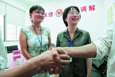 昨日上午,在芙蓉区联合人民调解委员会驻区法院调解室,陈静、姜晓华第一次进行独立调解。在宣布调解纪律,陈述有关事情的经过后,见当事双方仍怒气冲天,陈静和姜晓华决定将他们分开调解……经过3个小时调解,交通事故人身损伤纠纷当事人蔡某和曾某终于化解了矛盾。看着他们吵着进来笑着出去,陈静和姜晓华深深舒了一口气。