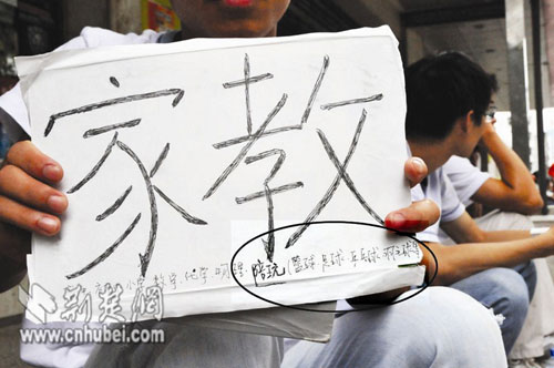 图为:打出的家教招牌。 记者刘蔚丹 实习生荣佳颖摄