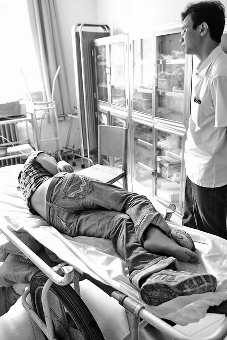 昨日中午12时许,记者在郑州市第二人民医院骨外科见到温彩霞时,她正独自躺在病床上输液。经医生诊断,温彩霞腰、胸部位出现两处骨折,此外,多处粉碎性骨折。