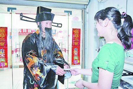 9月9日,刘帅身穿古装,装扮成曹操,来到许昌市一家打字复印店,给王老板送来了