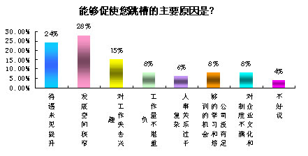 随后的调查也体现了这一观念,28%的受访者最不满当前工作“发展空间狭窄”,24%的人群表示“待遇未见提升”,另有15%的人群选择“对工作失去兴趣”。