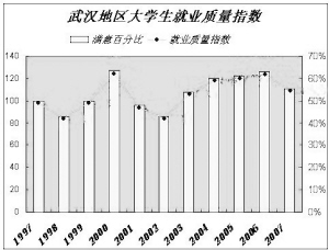 本报讯(记者万建辉)就业满意率从2006年的61.9%陡降到去年的54.4%,武汉地区大学毕业生就业质量结束了2002年以来连续上升的趋势。