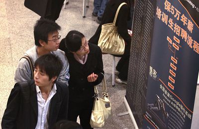 市人才服务中心的信息显示,同样受经济形势影响,今年招聘会前来应聘的人比往年多,但招聘的有效岗位相对减少。人才市场上,时常可见08届应届毕业生的身影。而本科毕业生的毕业起薪愿望大多降至2000元/月。