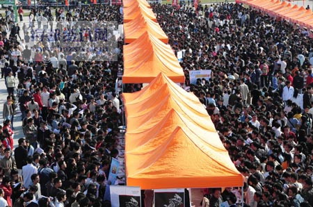 酒店“门童”、“运送员”,这些原本与大学生不沾边的岗位,昨日(11月20日)出现在福州举行的大学生招聘会上。昨日,由福建省人事厅、中国海峡人才市场联合举办的“福建省2009年大中专毕业生福州地区大学新校区专场招聘会暨大学生见习招聘会”,在福建师范大学旗山校区拉开帷幕,有上万名学生进场应聘。