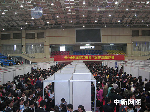 中新网武汉11月22日电 (艾启平 李飞)为缓解应届毕业生严峻的就业形势,11月22日,由湖北人力资源中心(方阵人力资源集团)、湖北中医学院联合举办的免费校园招聘会在该校体育馆举行,来自湖北省内外100家医疗机构、医药企业、医疗器械公司等可为2009届毕业生提供近1500个工作岗位。