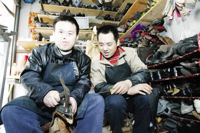 昨日上午,在谢家湾劳动村一个8平方米大的修鞋铺里,葛会领正在师傅张尚永的指导下,给皮鞋刷胶、上底。“娃儿聪明学得快,但干这一行实在有些委屈他。”张尚永说,今日1月6日,重医大一个姓何的女老师找到他,希望他能收一个特殊的大学生当学徒。虽然事前已知新徒弟与常人有些不一样,但见到本人,他还是感到惊讶,怕葛会领吓倒顾客,但知道葛会领的遭遇后,还是收下了这名大学生徒弟。