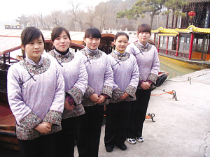 谈到两人大学所学专业,唐红梅介绍说自己去年毕业于苏州经贸学院纺织贸易专业,小崔非常风趣地说:“学这个专业应该做经贸部长。”把现场观众逗得哈哈大笑。钱悦介绍,自己是扬州职业大学商务日语的应届毕业生。“你应该去中国驻日本大使馆做专员。”小崔的一番“刁难”把两位船娘逗得既害羞又开心。