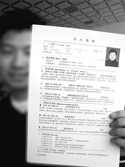 “家教、发单员……这些兼职可能都是‘大路货’”,于是,他删掉了这些毫无特点的经历,并按重要程度把简历分层次,又将自我评价改用实例支撑。他花了两个月,作了近70次修改,将厚厚一沓简历精简到一张纸。