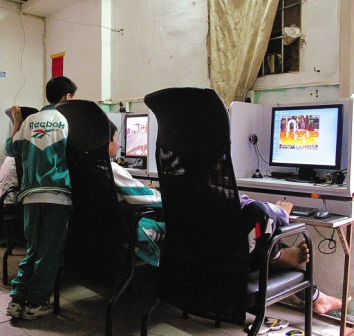 记者走进向西街一巷一间门面窄小的平房,里面闷热非常却“硝烟弥漫”,电脑前5个十来岁的学生并排坐着,玩兴正浓,额头上全是汗。墙上没挂营业执照,只在收银台前高悬着“通宵10元,一个钟2元,会员1.5元”的牌子。