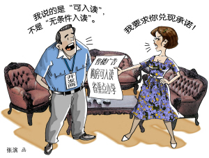 “购房可入读该地段招生的重点小学”是现在不少楼盘广告中显眼的卖点。广告虽然诱人,其中的承诺能否兑现却要打个问号。开发商打出“购房可入读省重点小学”的卖楼广告承诺,入住白云畔山花园的业主任小姐却发现,如果没有广州户口,即使买了房、交了教育配套资金,还要缴纳2.6万元的捐资助学金,孩子才能入读公办学校。认为受开发商广告误导的任小姐一纸诉状将开发商告上法庭,要求其履行广告承诺。昨日,广州市中级人民法院二审开庭审理此案。