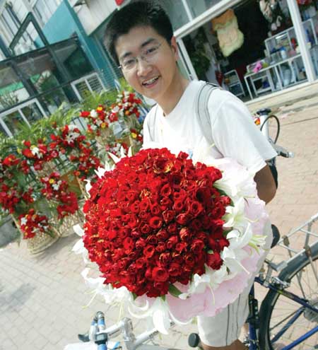 昨日上午,记者在人民广场鲜花总汇门前见到了刘宇,他正在为女友准备玫瑰花。“我暗地里刺探过‘军情’,知道她希望求婚时收到玫瑰花,不需要钻戒,所以一定要买一大束花送给她。”刘宇表示,这一定是女友为他着想,怕他花费太多。记者留意到,刘宇裸露在外的皮肤黝黑,而衣服遮盖下的上臂肤色却很白,显然经历了多日的风吹日晒。在一个本子上,记者还看到十几个邮戳和行程中的日记,他每到达一个地方都要去当地邮局盖上邮戳。“这是我珍贵的经历,我会一直保存下去。”刘宇表示。