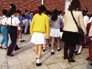 宋女士告诉记者,自己的女儿在李沧区某小学读五年级,被学校选拔参加区里的集体舞比赛。让她感到不能接受的是,学校要求参赛学生必须穿夏季服装参加,其中女生要用“黑皮筋扎头发,穿短袖上衣、短裙、白袜子;男生要穿短裤,黑皮鞋。”由于女儿自幼身体较弱,在严寒天气穿这样的衣服肯定会生病,宋女士打电话到学校向老师通融时被拒绝了,因为这是“区里的安排”,所有参赛学生都要这么穿,否则会影响比赛成绩。