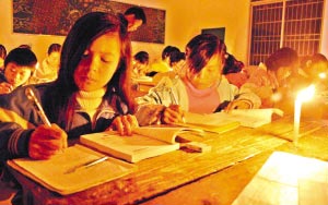 昨天(19日)下午6时40分,16岁的陈丽娟与同学们照例走入课室,从老师手中接过一支蜡烛点燃,当晚,连州市西江镇中学600多学生在点点烛光中,迎来了2008年新学期的第一个晚自修。